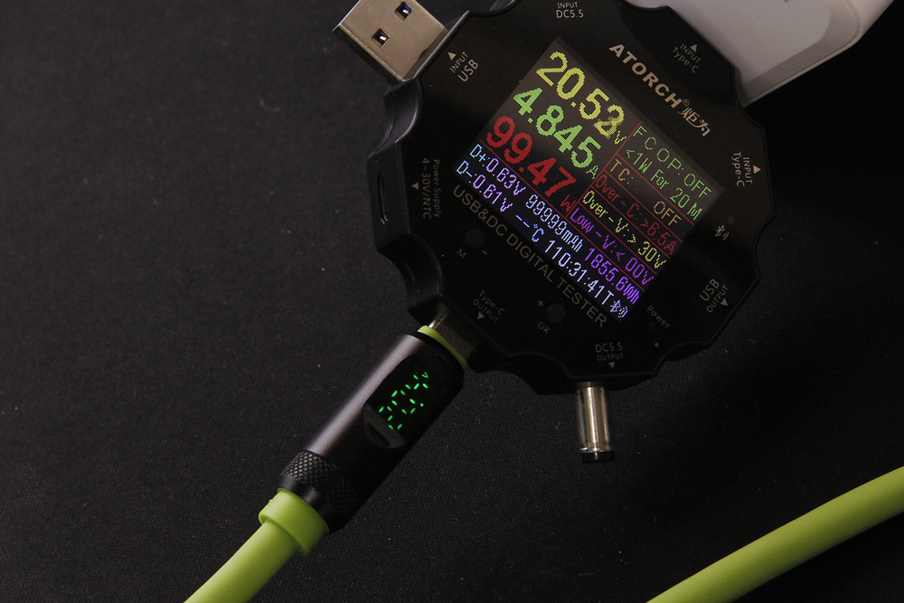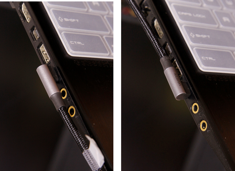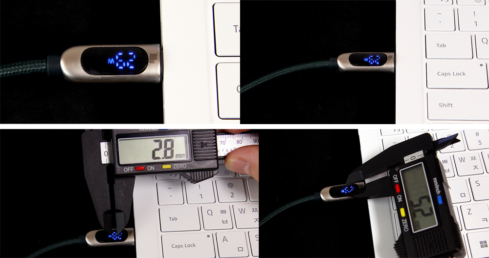 1차 약 5.4kg, 2차 약 4.8kg의 힘으로 당겼을 때, 노트북과 분리. 결과만 본다면 단순히 해당 케이블의 C 포트 인력이 다른 케이블 C 포트보다 몇 배 더 강하다고 할 수 있으나, 해당 케이블의 C 포트는 모두 'ㄱ'자 형으로, C 포트가 노트북에서 분리될 때, 'ㄱ'자 포트 한 부분이 노트북 포트에 걸려 버티다가 분리되었습니다. 따라서 본 케이블의 C 포트 인력 결과는 해당 케이블의 특성을 어느 정도 감안하고 평가해야 할 것 같습니다.