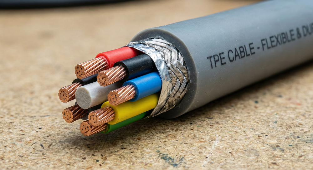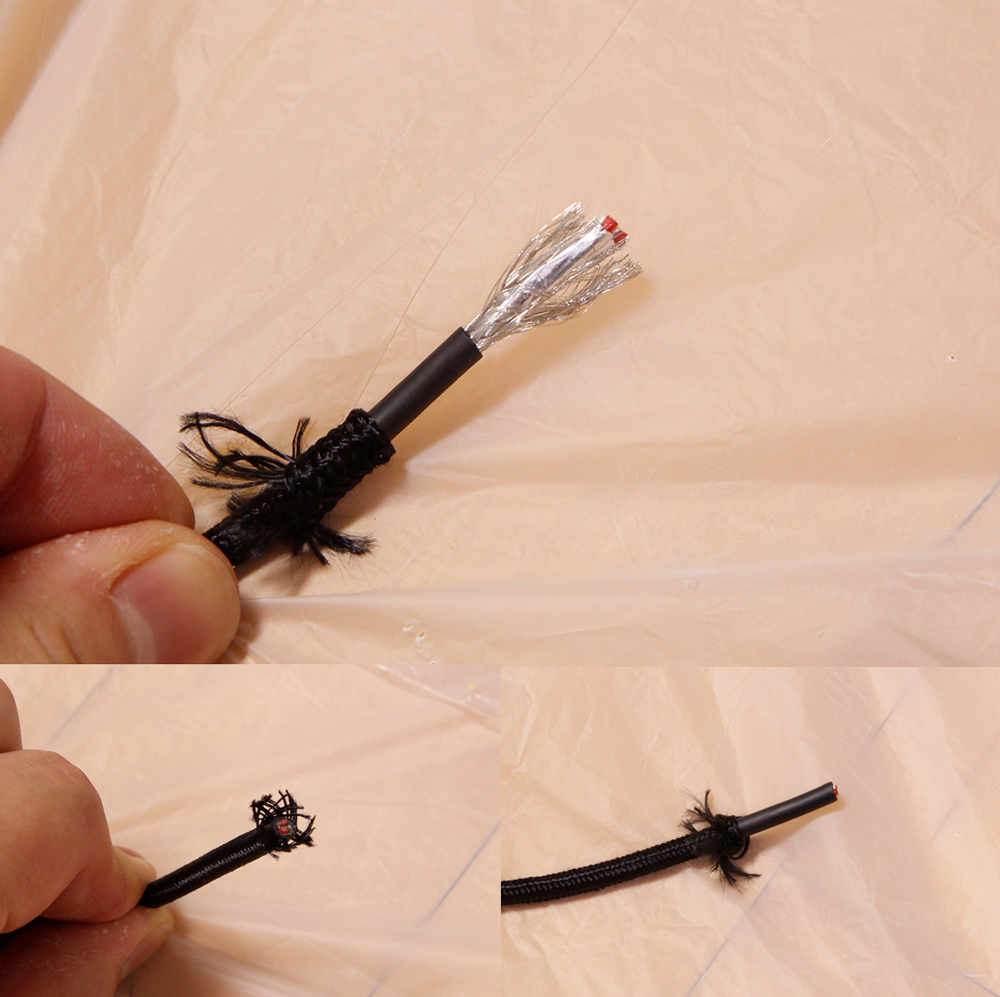 아트뮤 플렉스 PD Type C to C 100W 충전 케이블(1.2m)의 내부는 두꺼운 TPE 소재로 1차 마감이 되어 있으며, 케이블 보호를 위해 매시 와이어 실드와 알루미늄 실드가 추가로 사용되었다. 또한, 케이블 보호를 위한 그라운드 와이어 1가닥이 있으며, 전력 전송을 위한 일반 케이블은 6가닥으로 구성되어 있는 것을 확인할 수 있습니다.