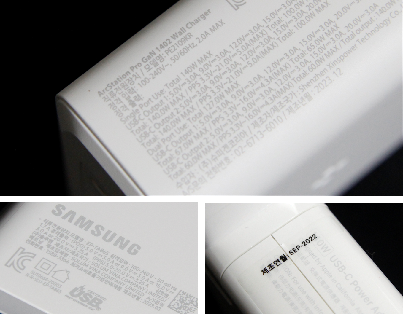▲ 슈피겐 140W GaN 충전기 (호환성 확인을 위해 삼성 65W 충전기, 애플 140W 충전기로 크로스 체크)