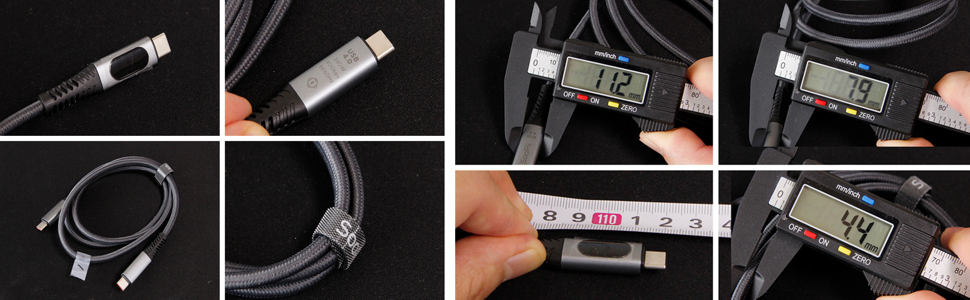- 특징: LED 디스플레이 / USB 4.0 / 240W / 40Gbps / 8K60Hz 지원 / 벨크로 타이 제공.
