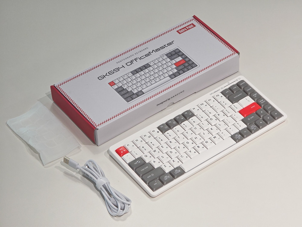구성품: 키보드, 케이블, 2.4Ghz USB 수신기(후면 마그네틱 수납), 키스킨.