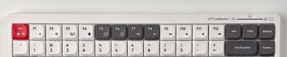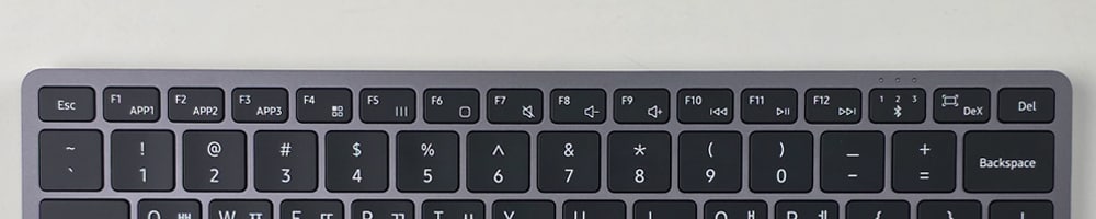 최상단 기능키 배열 중 눈에 띄는 부분은 다른 키보드에는 없는 키보드 LED 백라이트 밝기 조절키 3개가 있다는 것. 다만 이로 인해 다른 키보드에는 있는 기능키 3개가 생략되어 있는 것이기도 하기 때문에 어쩌면 범용적인 실용성은 다소 낮다고 볼 수 있겠습니다.