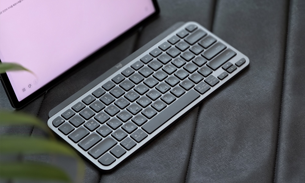 1. 로지텍 MX Keys Mini: 스마트 백라이트, 알루미늄 케이스.