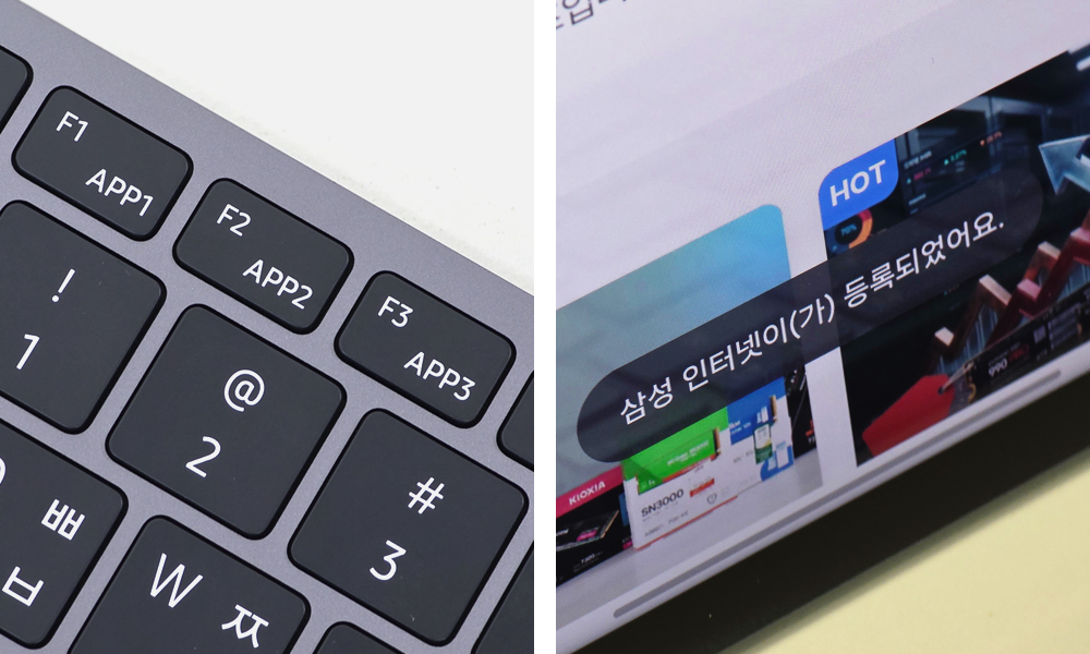 생산성을 높여줄 커스텀 가능한 4개의 액션키를 활용해 각 기능에 따르게 접근할 수 있습니다. 잠깐 사용해보았을 뿐인데도 생각보다 활용도가 많을 것으로 기대되었죠. 홈, 페이지 이동 등 태블릿 화면에 손이 가지 않아도 키보드만으로 일부 화면 전환을 할 수 있음이 유용했습니다.