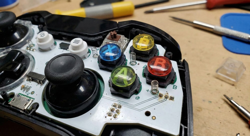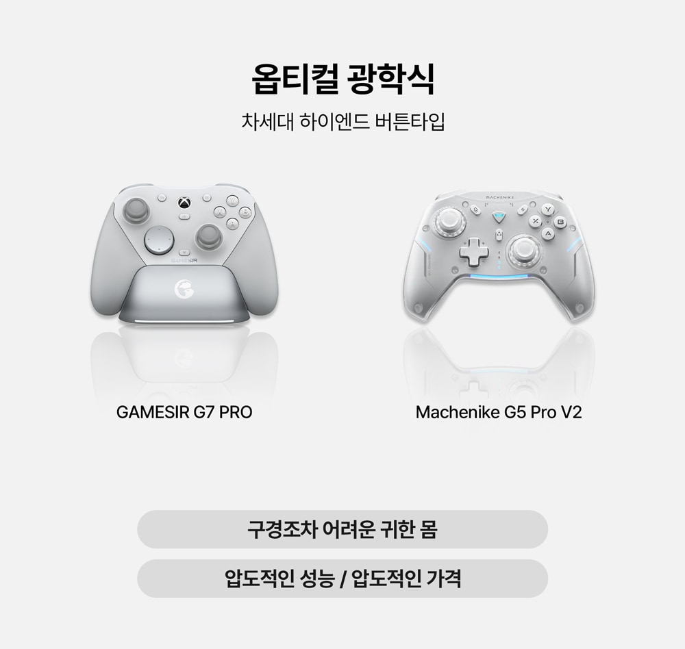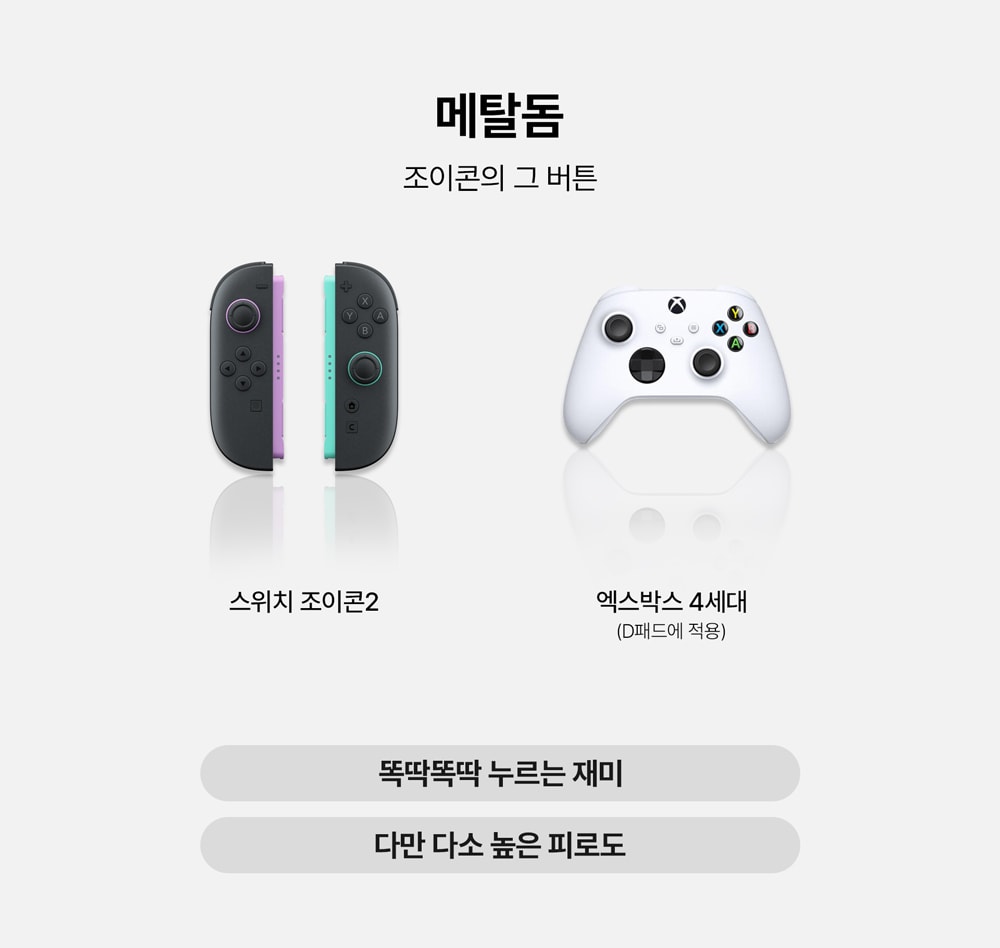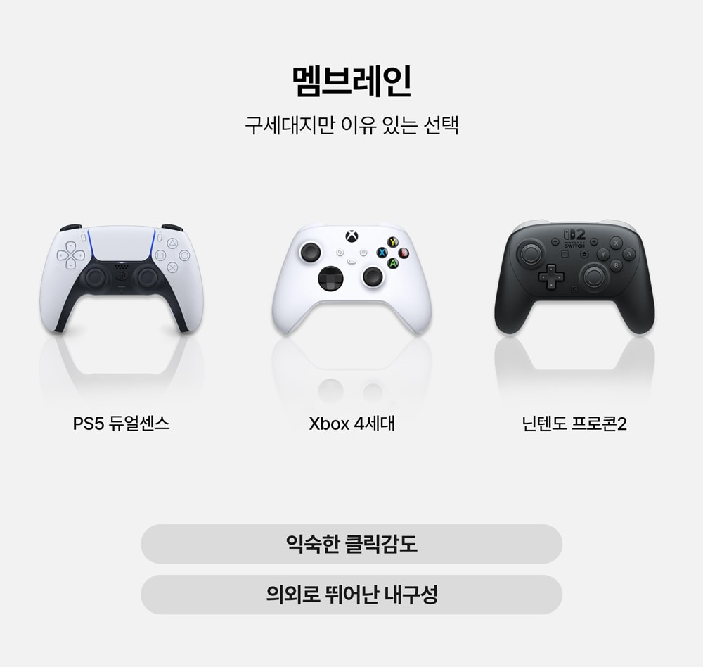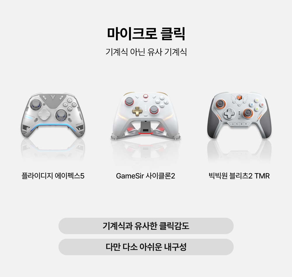 특징: 닌텐도 스위치의 조이콘과 같이 작고 얇은 컨트롤러에서 볼 수 있는 '또각또각'한 버튼.