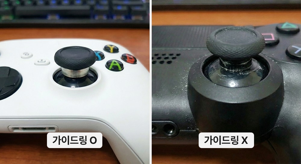 엄지로 조이스틱을 조작하는 것보다 훨씬 신속하게 시점을 전환할 수 있어 패드로 FPS 게임을 플레이할 때 필수 요소로 꼽히죠.