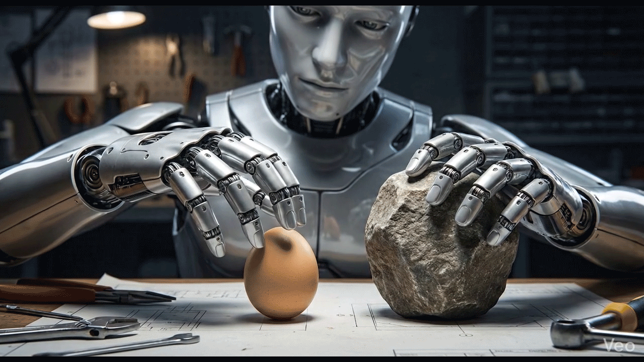 '깨지기 쉬운 달걀은 살포시 쥐어야 한다'는 판단은 인간의 지성에 의한 본능이라고 합니다. 이러한 판단을 지성이 없는 로봇이 학습되지 않은 상황에서 어떻게 대응할 수 있는가에 대한 의문이 제기되는 중.