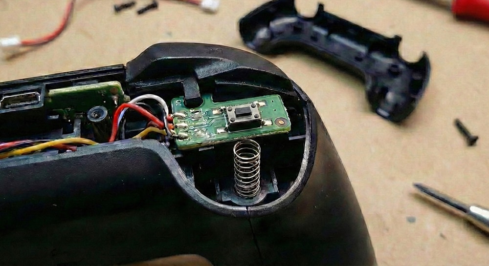 모터와 기어를 활용해 PS5의 어댑티브 트리거에 버금가는 수준의 장력과 진동을 제공하는 반응형 트리거 방식.