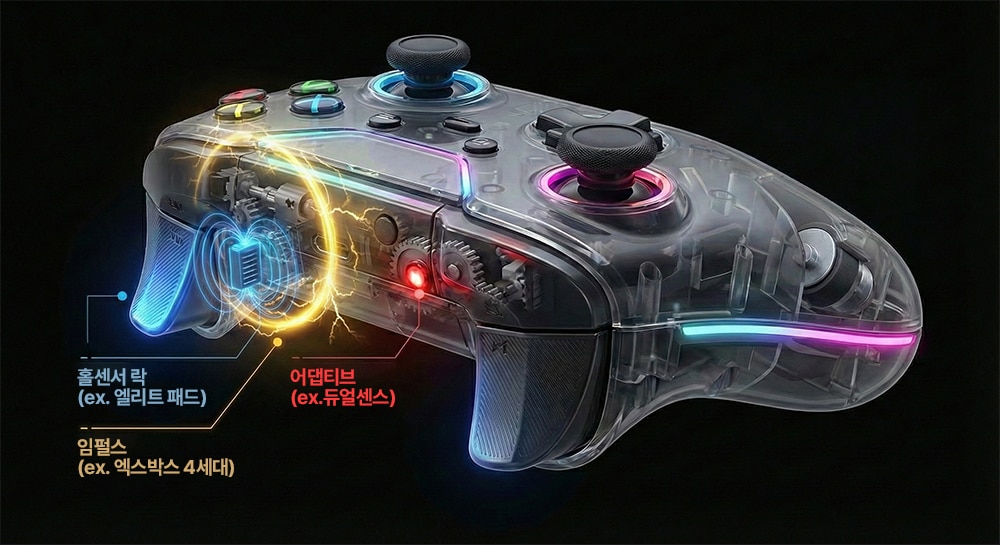 - 가장 합리적인 반응형 트리거: 임펄스. - PS5 유저라면 무조건: 어댑티브. - 최적화는 부족하나 모든 게임에 강제 적용 가능한: 포스피드백.