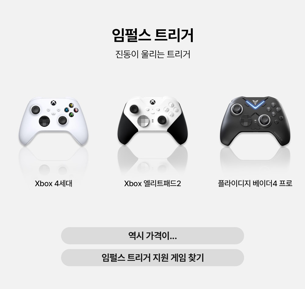 트리거락 지원 대표 기기: 엑스박스 엘리트패드 2세대, GameSir 사이클론2, 플라이디지 베이더4 프로 등의 하이엔드 패드.