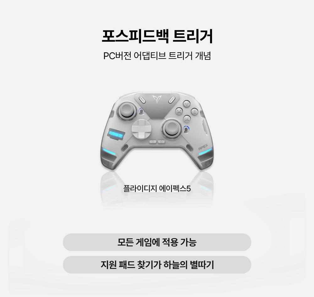 PC에 최적화된 어댑티브 트리거 개념으로 이해할 수 있는 수준의 반응형 트리거. 게임 속 물리 법칙(원심력, 노면 충격 등)을 사용자의 손에 직접적인 힘으로 전달.