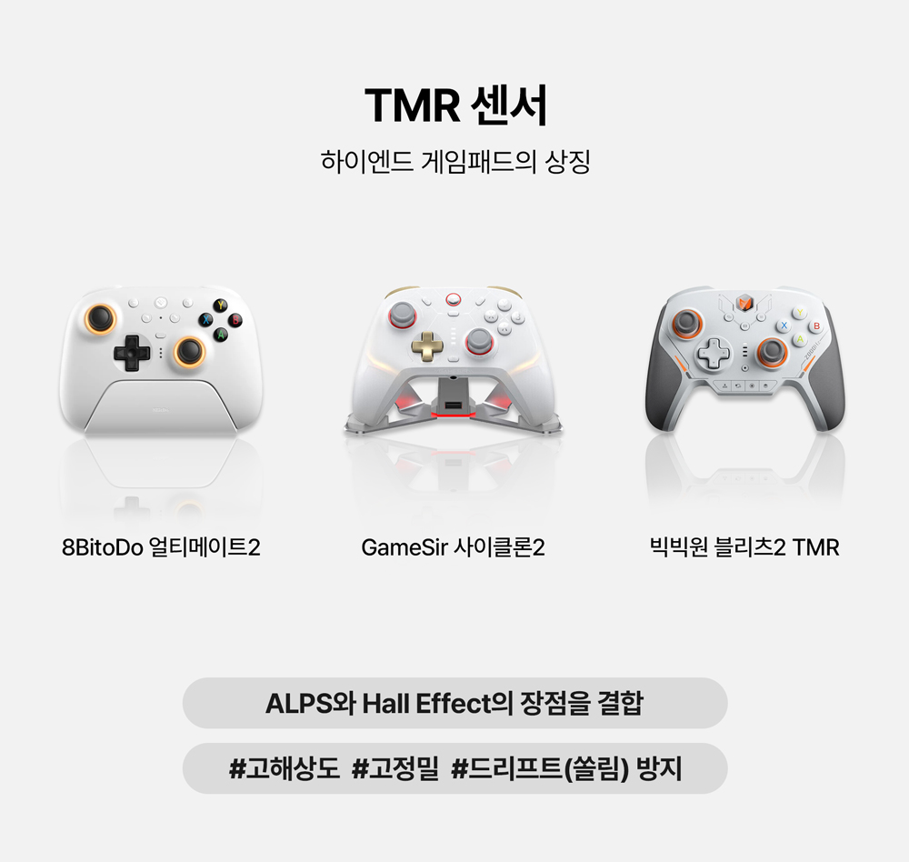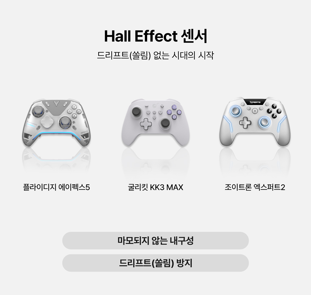 - 드리프트(쏠림) 증상 없는 부담 없는 금액대의 컨트롤러: 홀 이펙트.