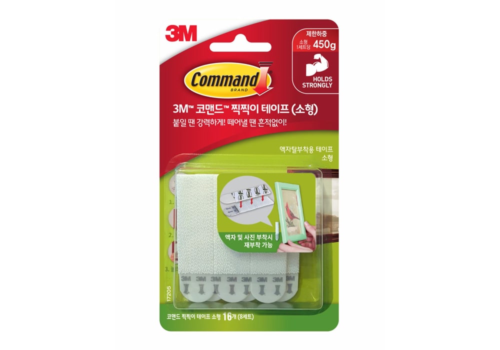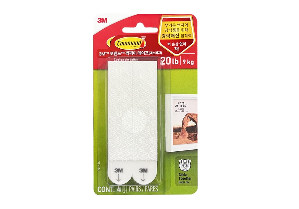 벽에 액자를 걸기 위해 못을 박는 건 이제 옛말입니다. 테이프 전문 제조기업 3M의 찍찍이 타입 3M 코맨드 액자 부착 테이프를 활용하면 벽에 못을 박지 않고도 무거운 액자를 간편하고 안전하게 걸 수 있죠.
