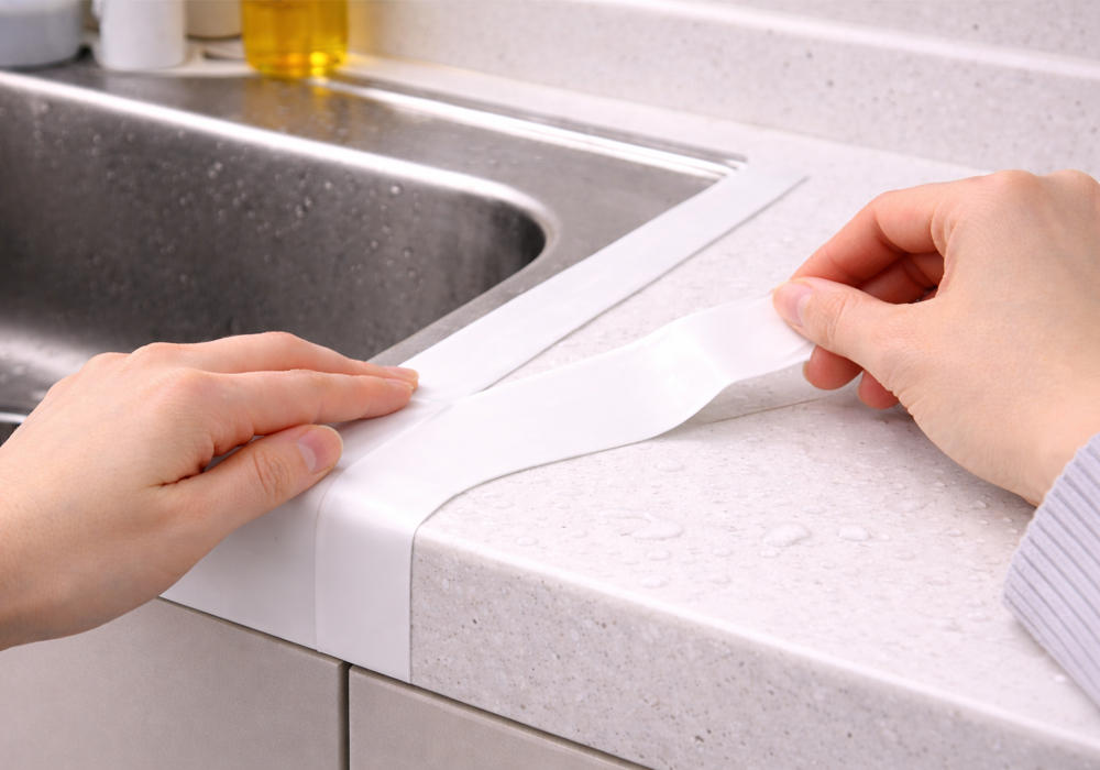 싱크대와 이음부 사이에 물이 유입되면 내부 자제가 썩거나 곰팡이가 생기는 문제를 야기하기에 보수가 필요한데, 방수성 보수 테이프를 이용해 간편하고 저렴하게 보수할 수 있습니다. 그중에서 실리콘 소재의 방수 테이프는 다른 빳빳한 타입의 보수 테이프 대비 부드럽고 유연하여 4면 코너를 감싸는 작업에 훨씬 유용하죠.