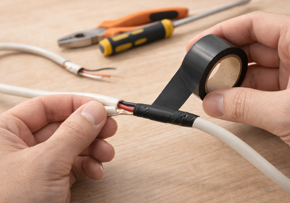 전기 저항이 매우 높은 PVC 소재를 기반으로 전기 흐름을 차단하기 위해 사용하는 특수 테이프로서 흔히 전기 테이프라 불리는 절연 테이프입니다. 꺾임이나 마찰이 잦은 곳에 대한 피복이 벗겨지기 전 예방 목적으로 사용할 수도 있습니다.