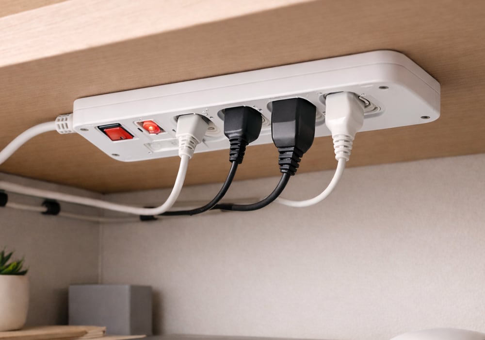 점착력이 강한 폼 양면 테이프 혹은 나노 겔 테이프를 이용해 멀티탭을 눈에 보이지 않는 책상 아래에 부착하여 숨기거나, 바닥면에 견고하게 부착하여 한 손으로 선을 뽑을 수 있는 편리한 사용 환경을 조성할 수 있습니다.