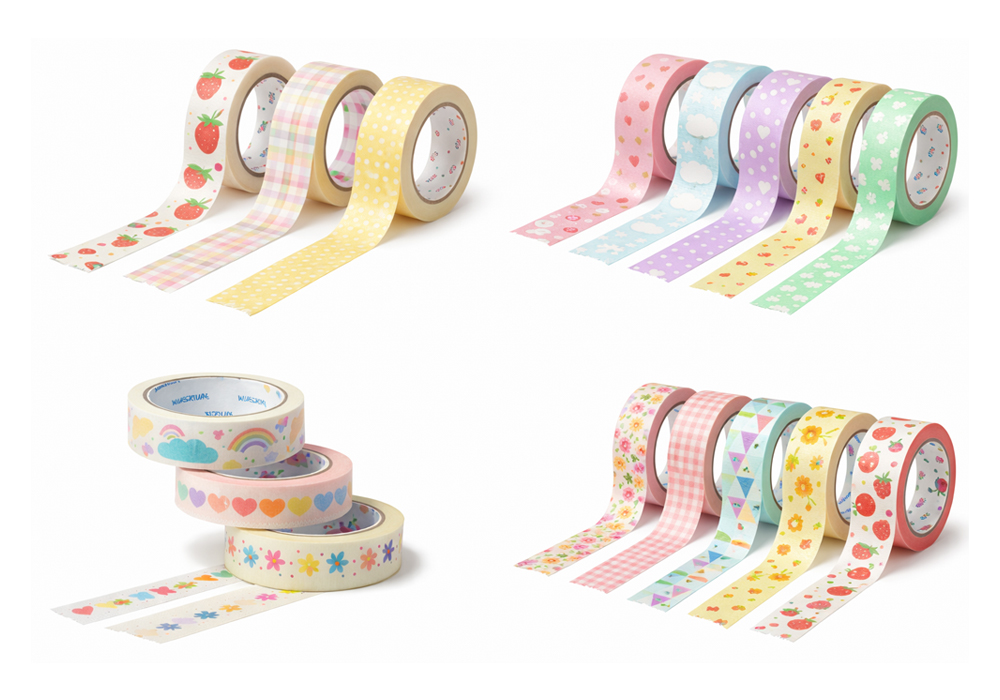 다채로운 색과 무늬를 특징으로 하여 다이어리 꾸미기에 주로 사용되는 마스킹 테이프입니다. 이 때문에 다꾸 테이프로 불리기도 하죠. 저점착 방식으로서 제거 시 부착면에 손상을 가하지 않는 게 특징인데, 그만큼 내구성 또한 약한 테이프임을 인지할 필요가 있습니다.
