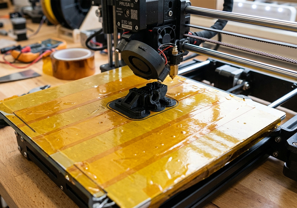 캡톤 테이프는 열에 강하고 끈적임이 남지 않는 특성을 기반으로 전자제품 기기 내부에 사용되며 일상에서 눈으로 직접 볼 수 있는 사용처로는 고열을 견뎌야 하는 3D 프린터의 베드(출력물의 받침)에 덮여 있는 모습에서 접할 수 있습니다
