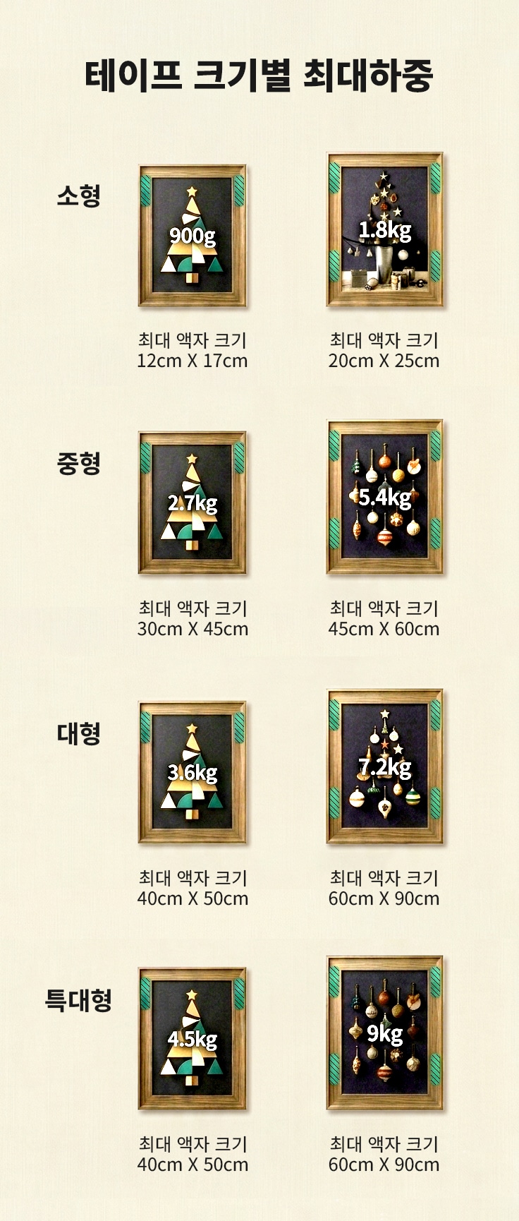 4가지 크기로 구분되는 타입별 최대 하중에 대한 내용을 구매 기준으로 참고할 필요가 있습니다.