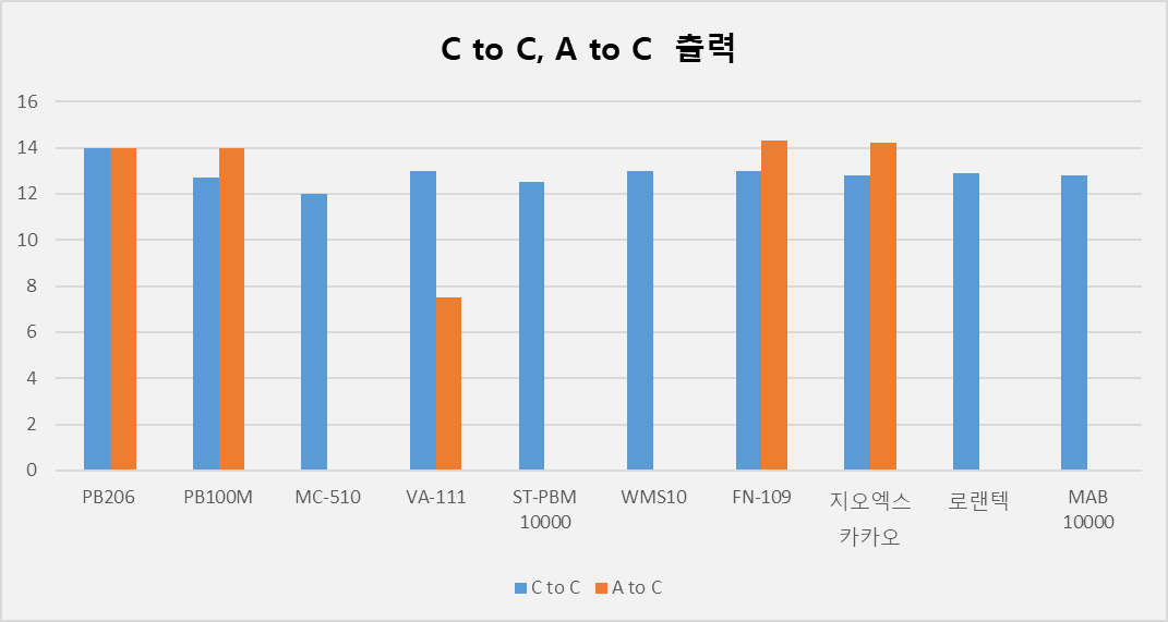 1위는 UGREEN PB206로 C to C, A to C 모두 14W로 높은 출력을 기록했습니다.
