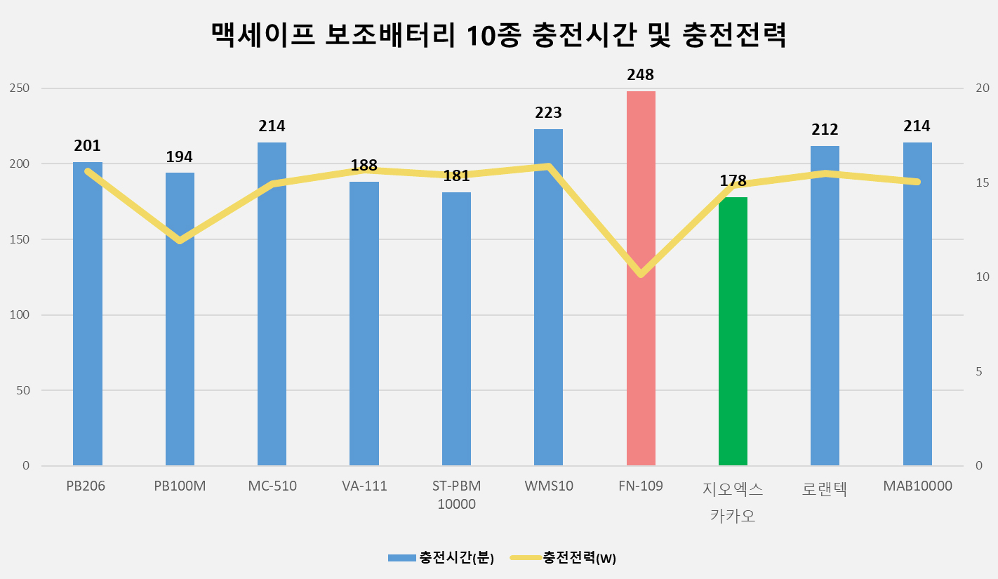 - 충전 시간이 가장 오래 걸린 제품은 피네스토 FN-109.