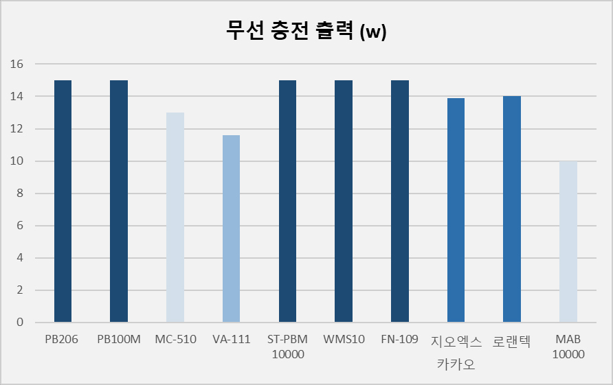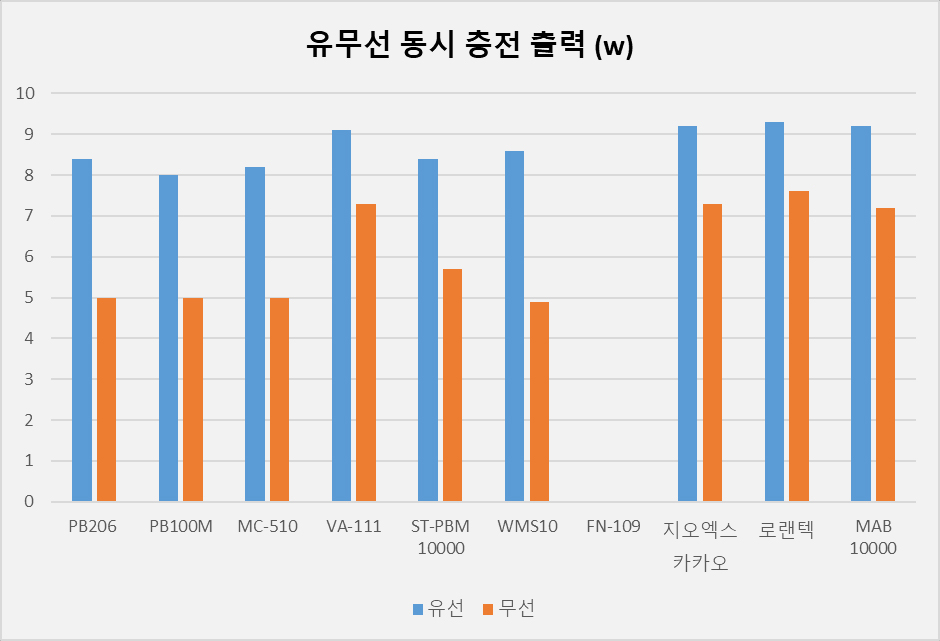 - 1위는 9.3W로 유선 충전되면서 동시에 7.6W 무선 충전을 지원한 로랜텍 보조배터리