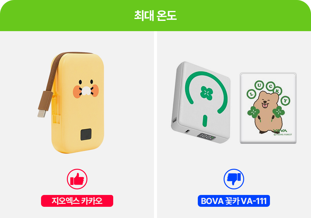 - 먼저 부착면 온도가 가장 높았던 제품은 피네스토 FN-109와 로랜텍 보조배터리