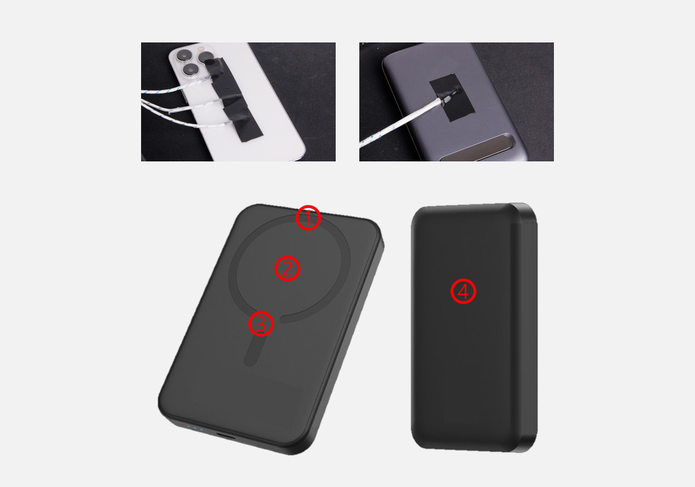 ④ 온도센서는 보조배터리 뒷면 자성 부분과 (총 3곳), 뒷면 중앙 측정