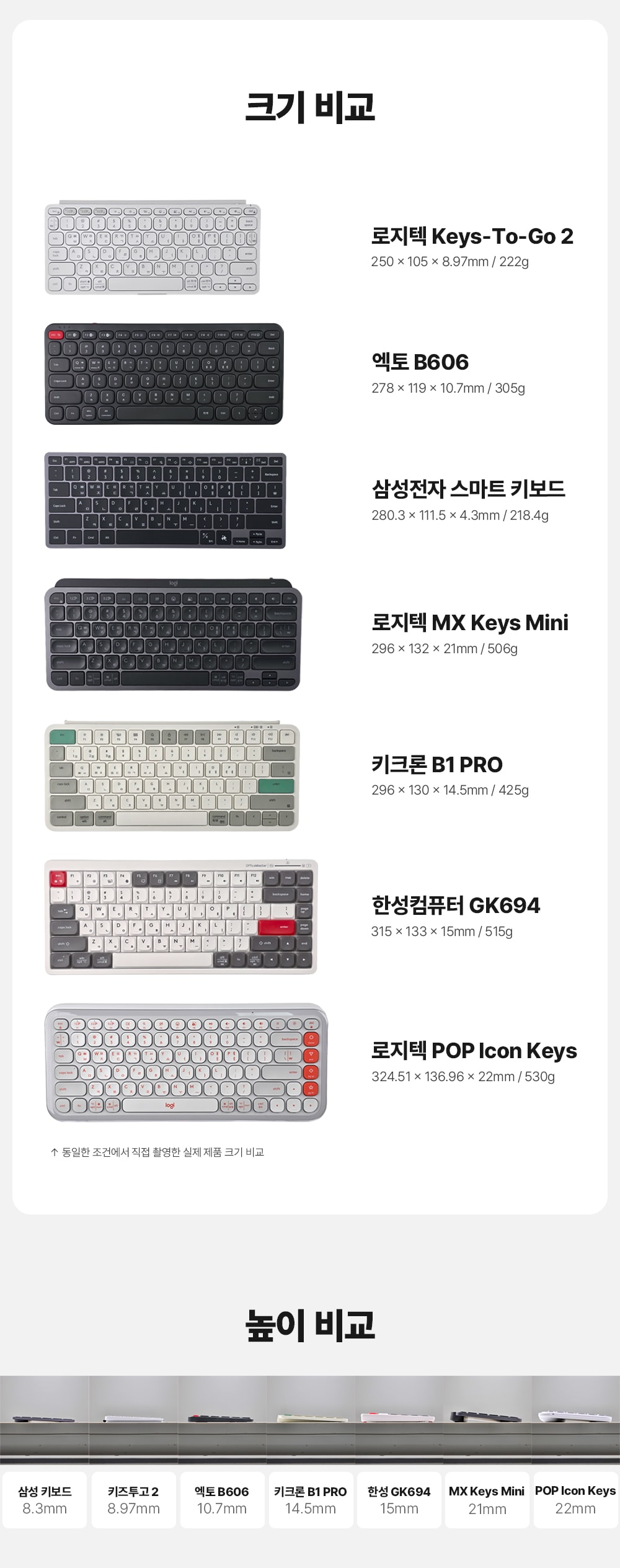 7위. 로지텍 POP Icon Keys 324.51 x 136.96 x 22mm / 530g